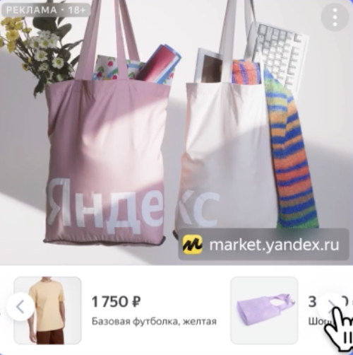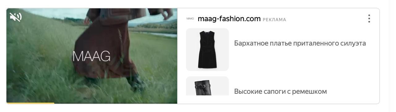 Такой баннер будет интерактивным (можно пролистывать карточки нескольких товаров) и поможет рассказать больше о предложениях магазина. Не очень хорошая новость — настроить его вручную и управлять им возможности нет. Рекламодатель может только создать несколько разных типов объявлений в одной группе и надеяться, что выдача Директа сформирует для него такой баннер.
