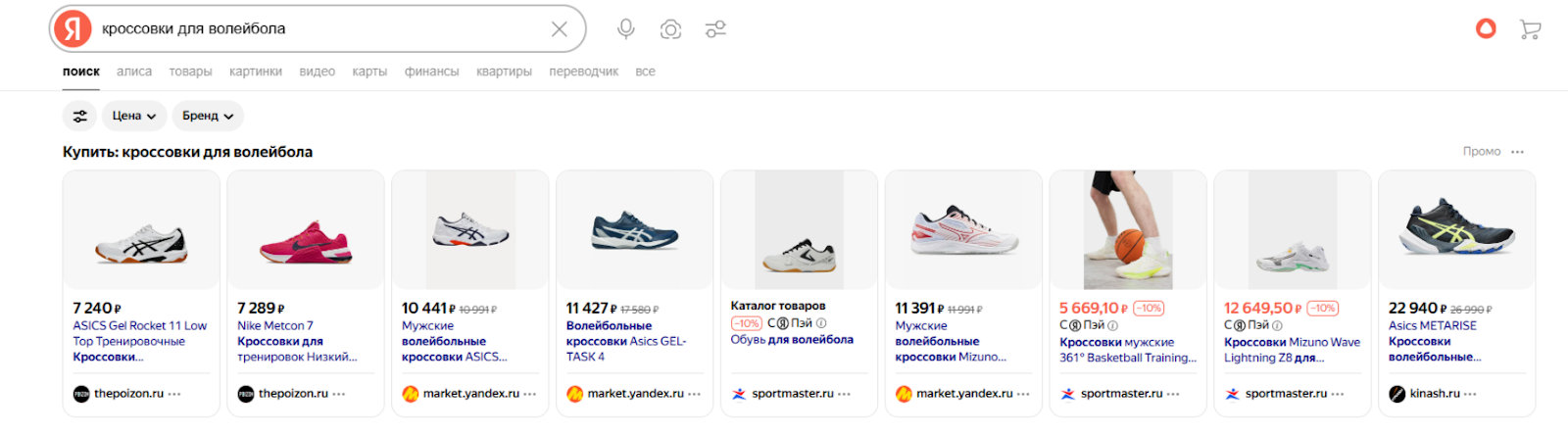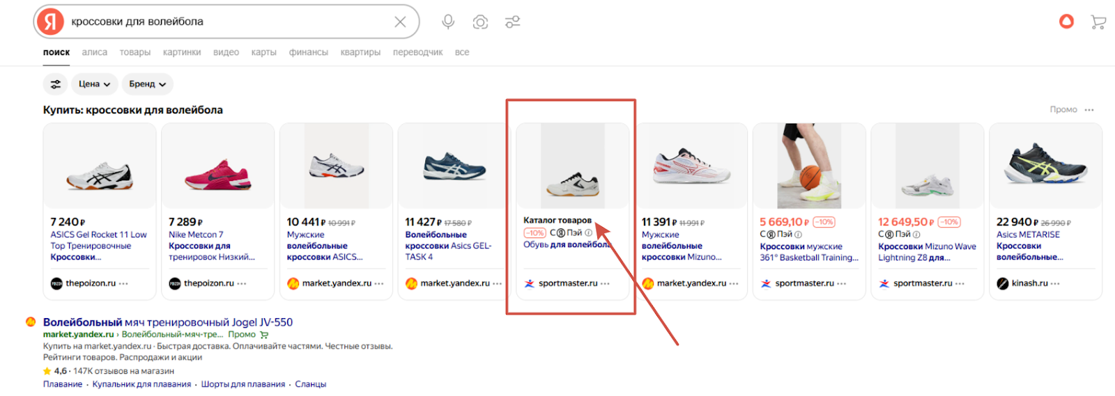 Например, он ищет кроссовки для игры в волейбол, и вы показываете ему каталог ваших волейбольных кроссовок, чтобы он мог выбрать из них подходящие.