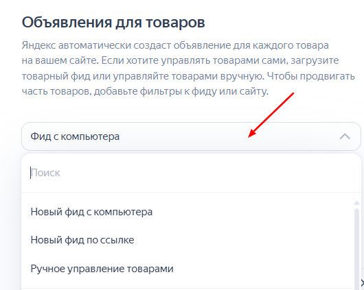 Посмотрим, какие основные типы фидов есть в Яндекс Директе: