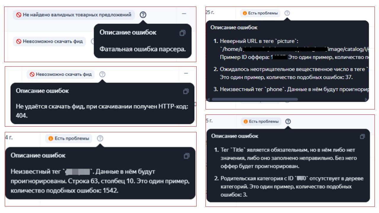 Некоторые примеры частых ошибок загрузки фида