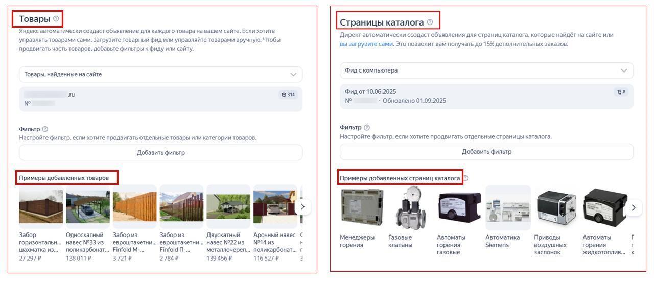 - Товарная кампания. Товарные объявления и страницы каталога. Последние создаются принудительно, даже если вы не хотите продвигать каталоги.