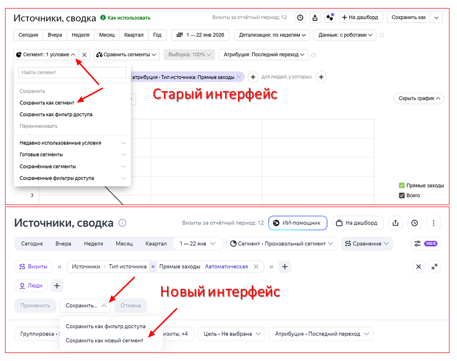 Сегментация в новых отчетах