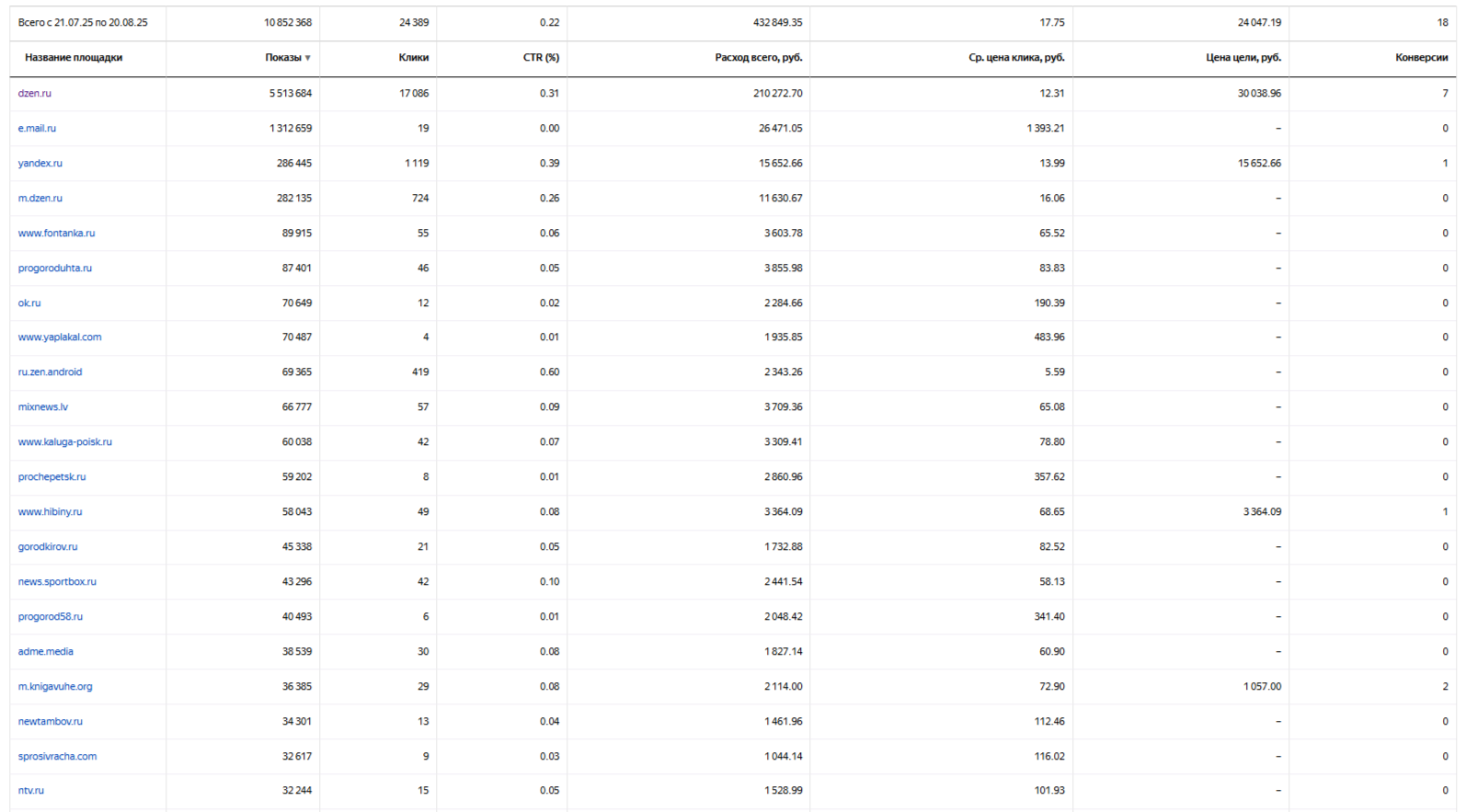 Объявления охватной кампании показываются в Рекламной сети Яндекса — на тысячах сайтах и мобильных приложений.