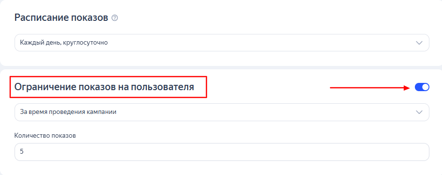Шаг 5. Настройте ограничение частоты показов одному пользователю, если не хотите, чтобы ваша реклама попала в разряд «раздражающих».