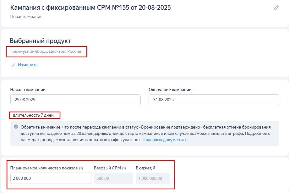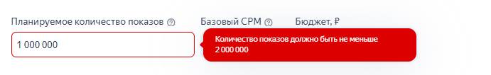 Система автоматом умножает количество планируемых показов на CPM и таким образом выставляет бюджет на период (изменить его вручную невозможно). Этот тип доступен крупному бизнесу, готовому выкладывать от 1 млн руб. в неделю за показы баннеров или роликов.