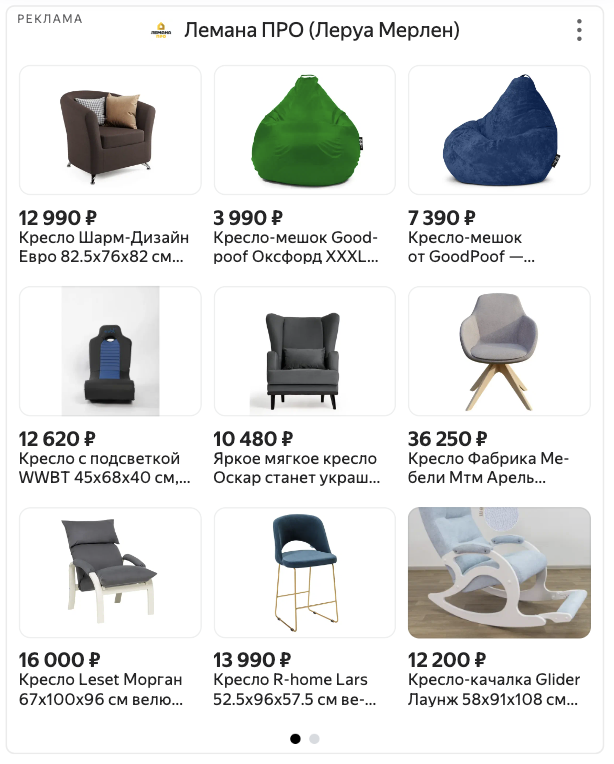 Остановимся подробнее на последнем. Это совершенно новый вид объявления для РМП, и очень интересный. С его помощью формируются динамические объявления и смарт-баннеры со множеством товаров рекламодателя.