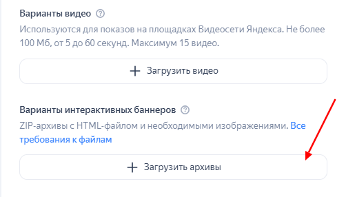 Здесь же можно добавить интерактивный баннер в формате ZIP-архива с HTML-файлом. Система создаст на его основе объявление типа Playable Ads — что-то вроде мини-игры или демо-версии.