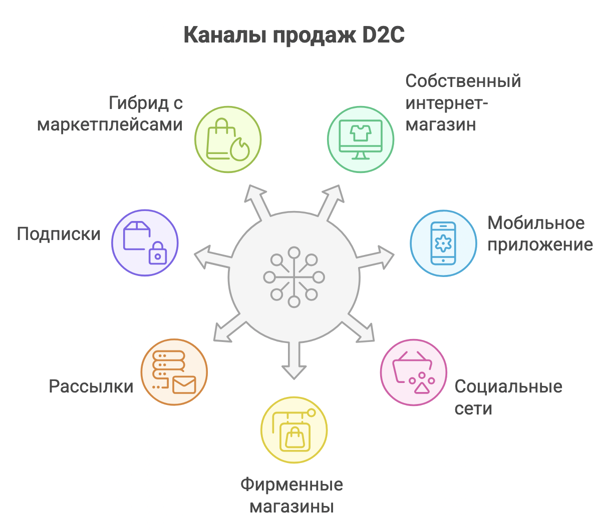 D2C — это омниканальность под контролем бренда. Ниже — основные каналы.