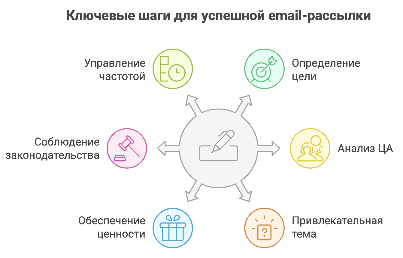 - Определите цель. Четко сформулируйте, какой результат должна принести рассылка;