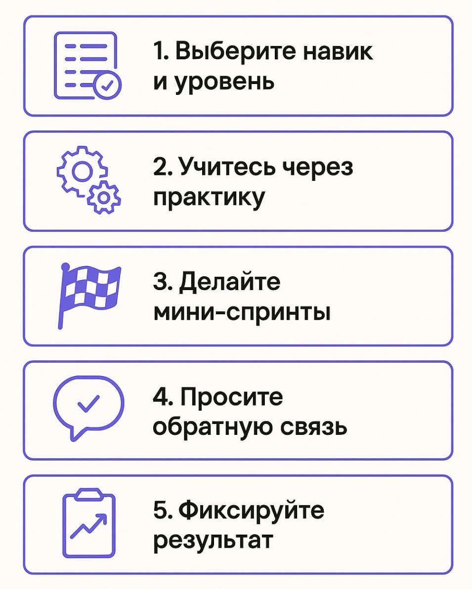 Посмотрите 20–30 вакансий на вашу роль и выпишите повторяющиеся требования. Это будет карта навыков. Затем сравните со своими и составьте план прокачки на 1–3 месяца.