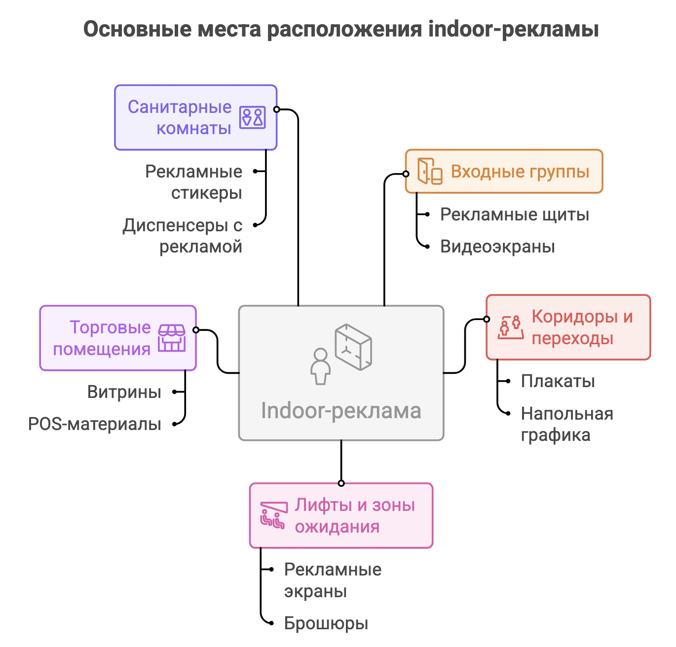 Основные места расположения indoor-рекламы