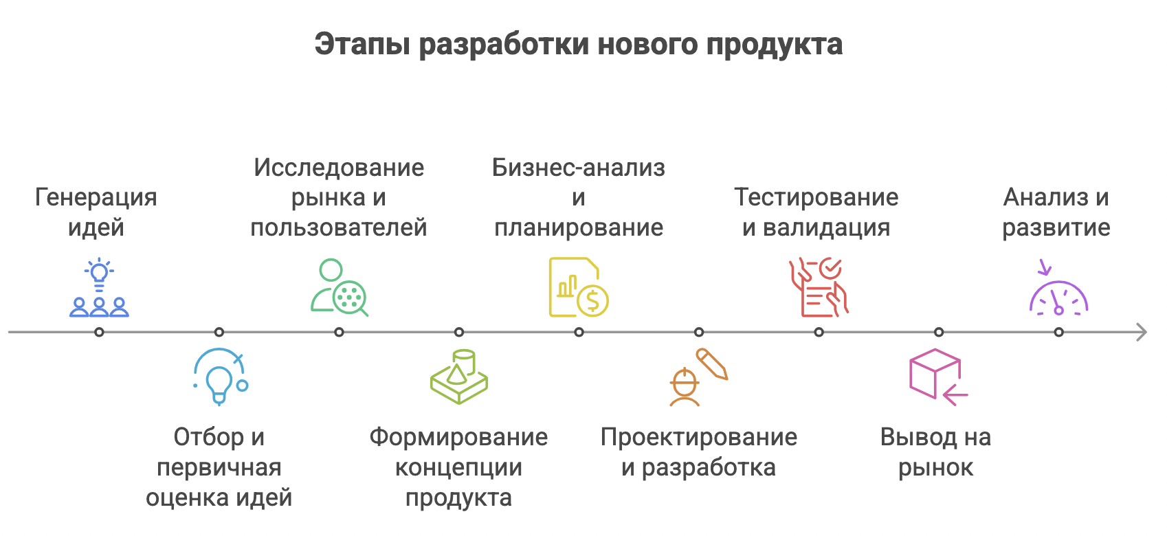 Процесс NPD может отличаться в деталях в зависимости от отрасли, но в целом включает ряд логически связанных этапов. Пропуск или формальное прохождение любого из них значительно увеличивает риск провала.