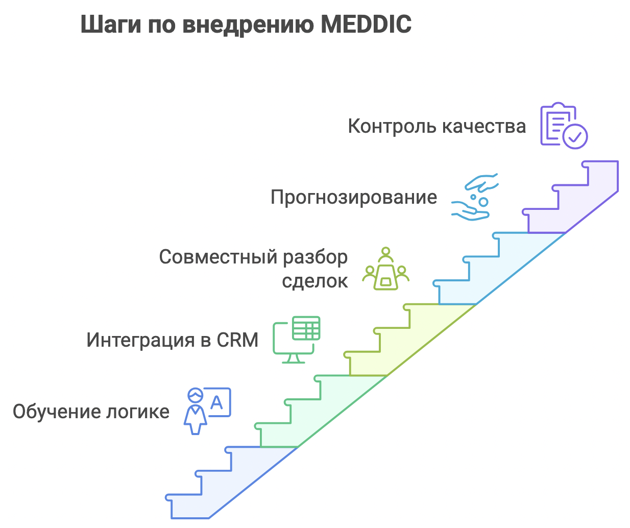 - Прогнозирование. Подтвержденный MEDDIC = высокая вероятность закрытия.