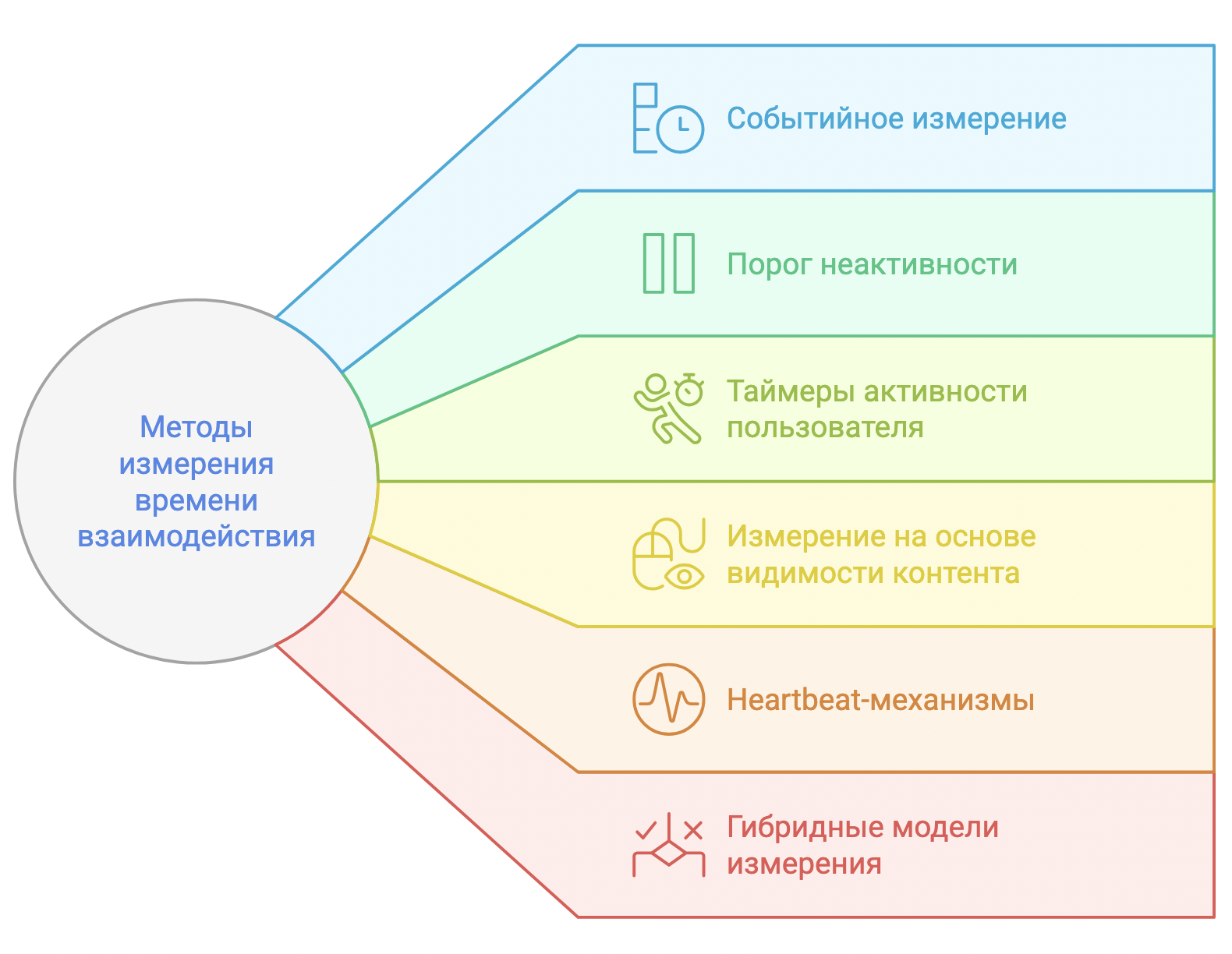 Измерение Time Spent представляет собой сложную задачу, поскольку цифровые системы не имеют прямого доступа к когнитивному состоянию пользователя. Поэтому используются косвенные методы, основанные на поведенческих сигналах.