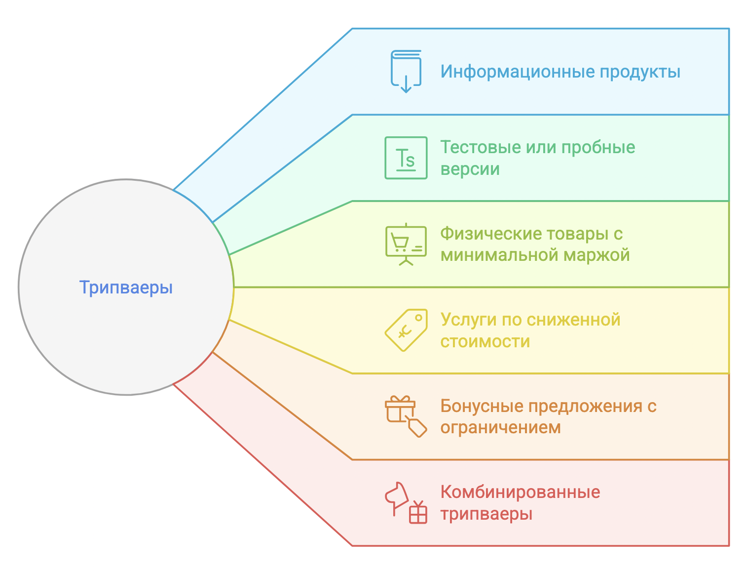 Трипваеры могут сильно отличаться в зависимости от ниши, продукта и стратегии компании. Однако их можно условно разделить на несколько основных типов.