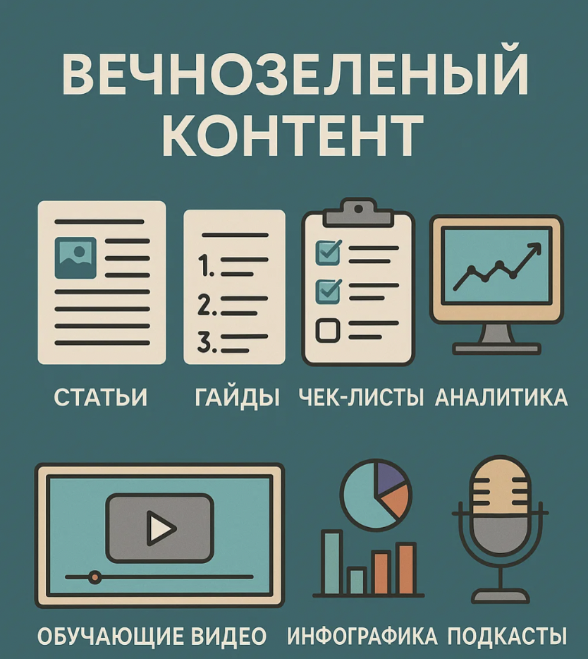 В отличие от сезонного или новостного, вечнозеленый контент не «сгорает» через несколько недель. Он рассчитан на долгосрочную перспективу и продолжает генерировать трафик, лиды и укреплять репутацию компании.