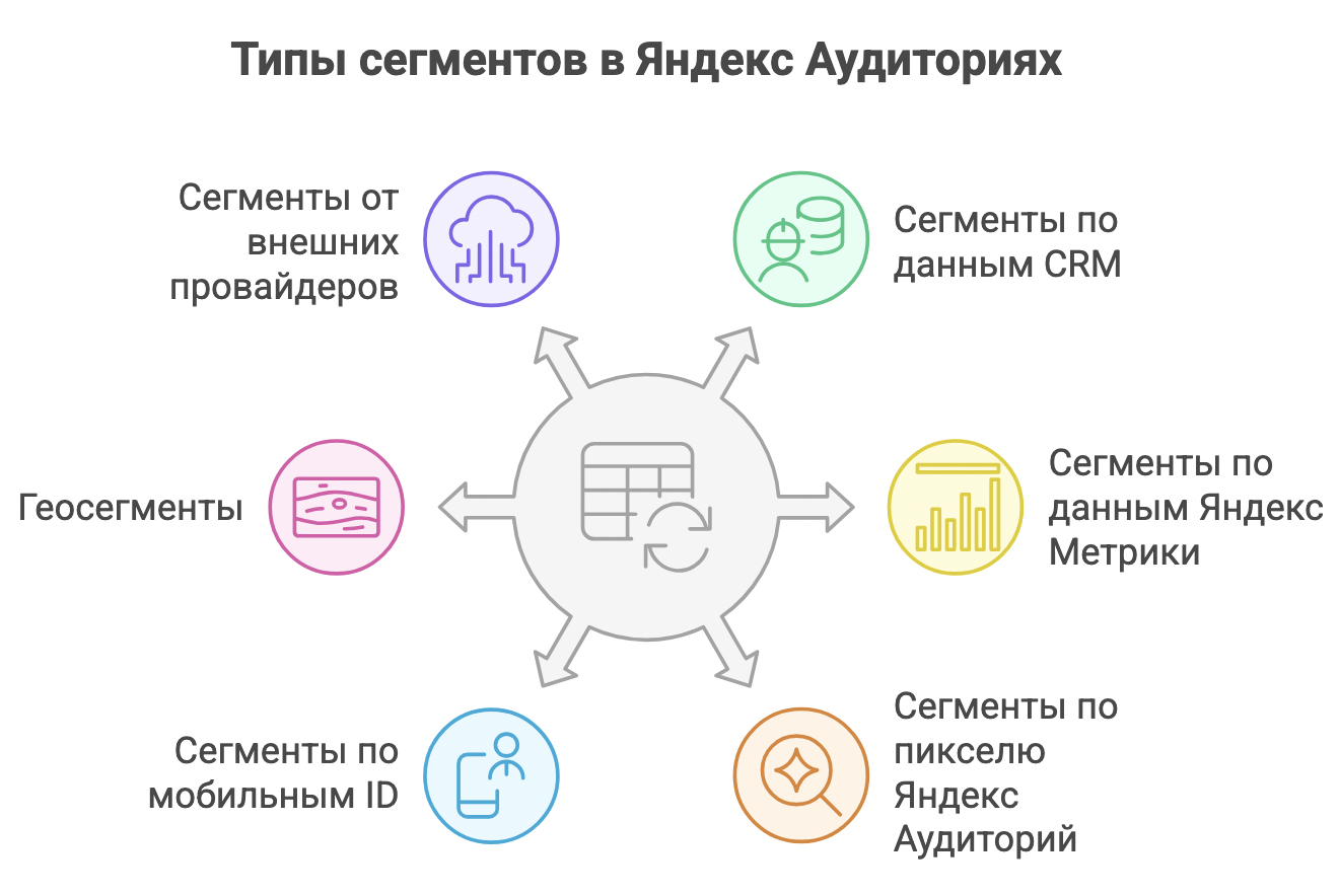 В Яндекс Аудиториях можно создавать несколько типов сегментов.