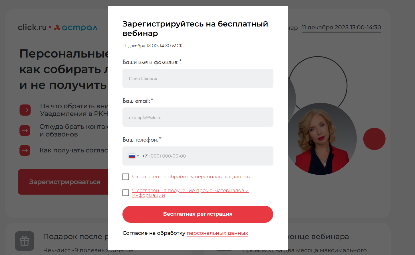 Проводится на узкую тему. Имеет четкий дедлайн, мотивирующий регистрироваться. Помимо того, что вебинар сам по себе лид-магнит, для получения контактных данных можно использовать: