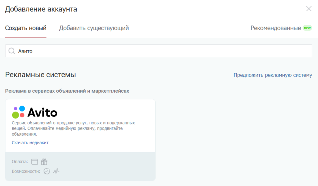 - Авито Реклама. Это отдельный рекламный кабинет, который появился в конце 2025 года. Теперь реклама может вести как на магазин внутри Авито, так и на внешний сайт или в соцсети.