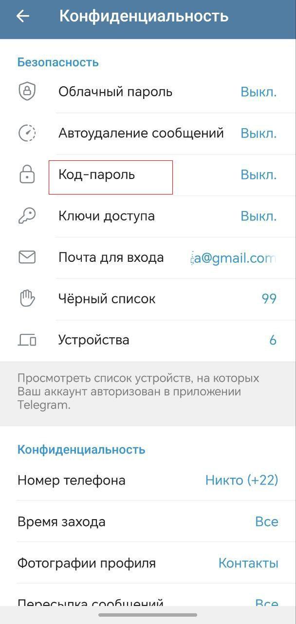 Если есть риск, что переписку могут увидеть посторонние, поставьте на Telegram код-пароль: при каждом входе мессенджер будет запрашивать код.