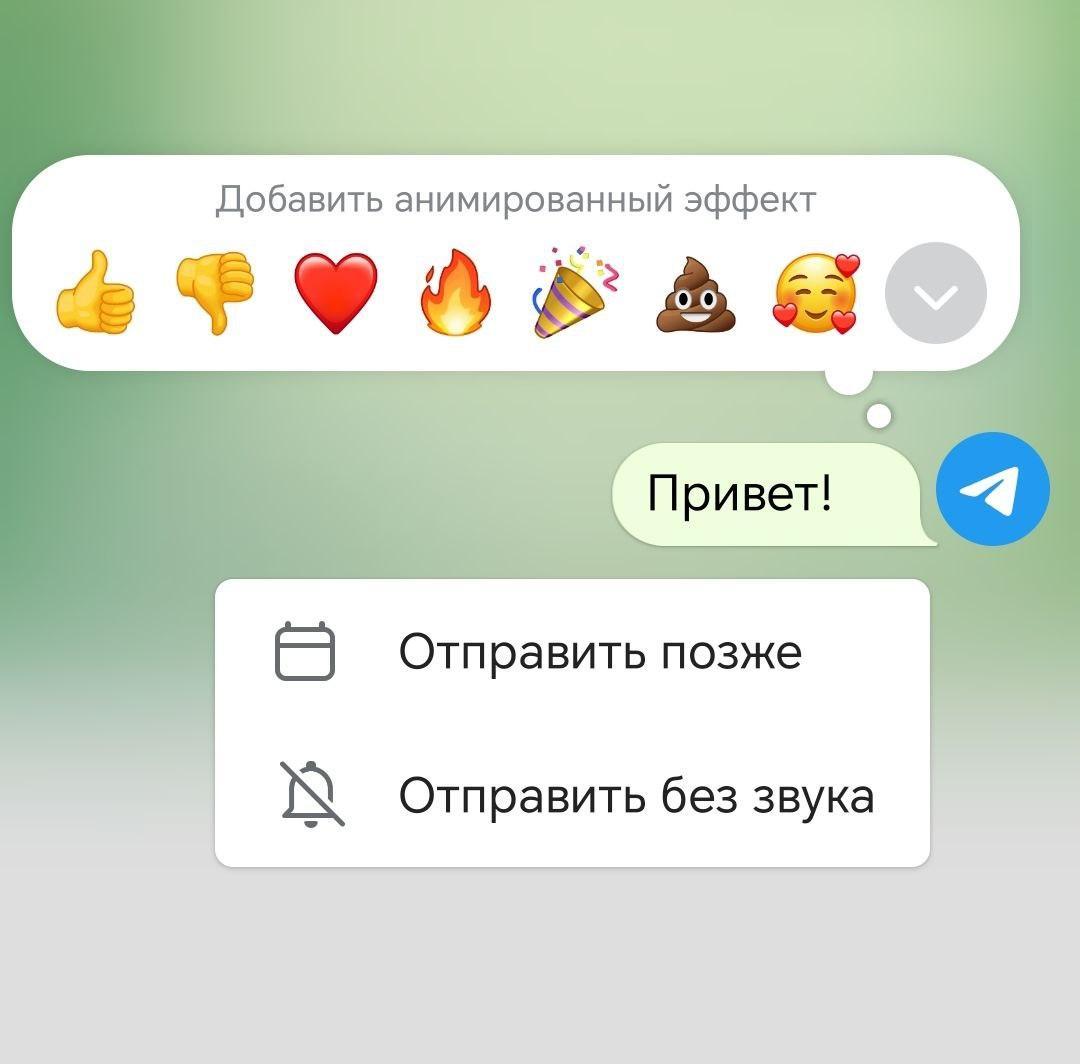 Здесь же можно выбрать беззвучную отправку. Собеседник получит сообщение, но вибрации и звукового оповещения не будет. При этом в строке уведомлений и на экране блокировки отобразятся уведомления (если они включены) с эмодзи в виде перечеркнутого колокольчика.
