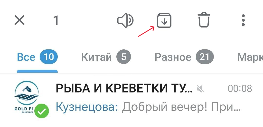 Для перемещения чата в архив нужно долго нажать на чат, а потом выбрать «В архив».
