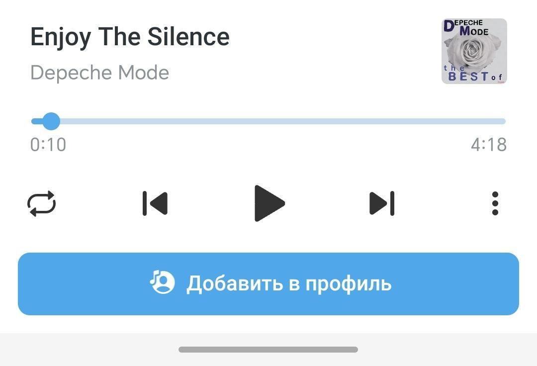После этого трек появится под аватаркой. Проверить можно в «Настройки» → «Мой профиль».