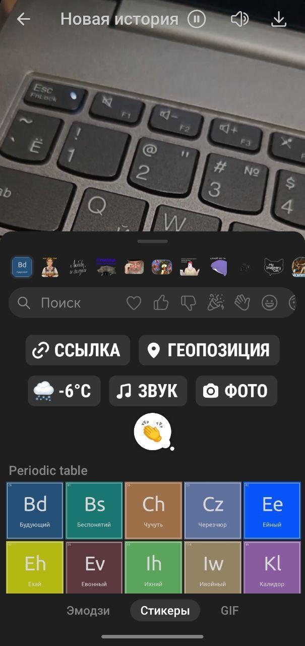 - Нажмите на кнопку со стикером и плюсиком → выберите «Звук»;