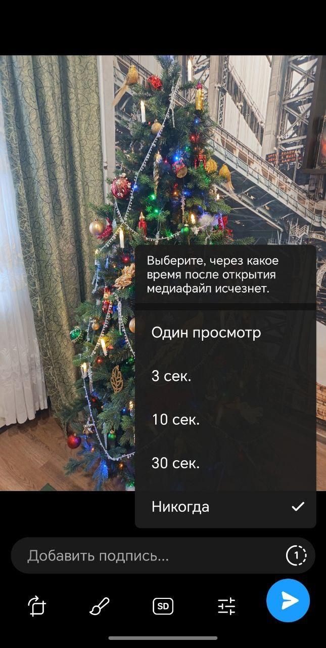- Выберите срок: 3/10/30 секунд или удаление сразу после первого просмотра.