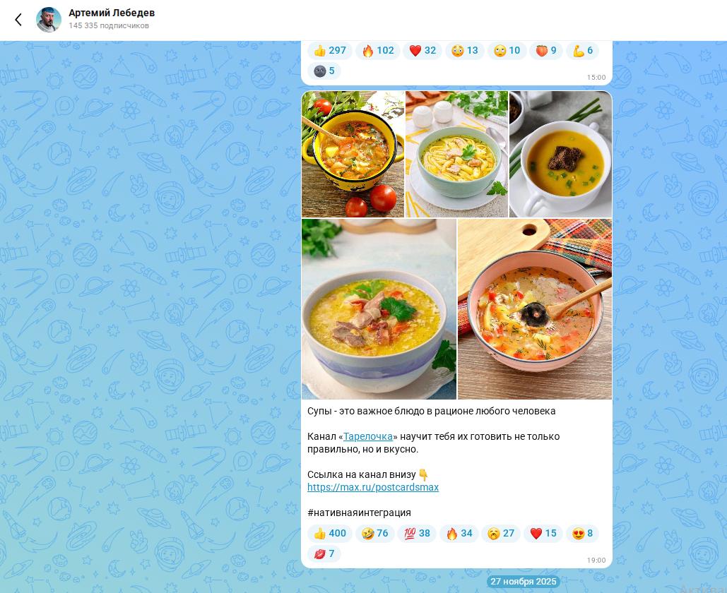 - долго живет — нативные посты по договоренности с администратором канала могут размещаться навсегда. В этом случае даже через несколько недель или месяцев пользователи могут попадать на них из поиска или просто пролистывая контент на канале.