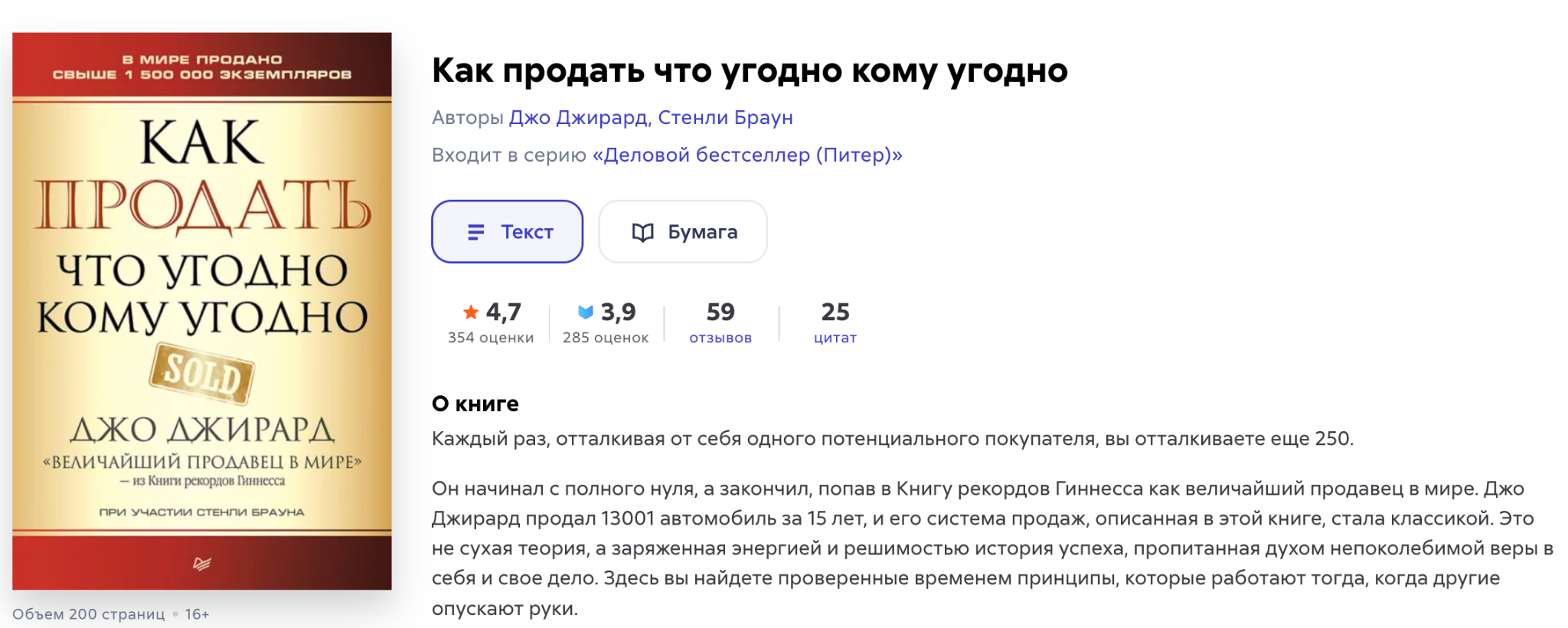 Хотя книга написана про классические продажи, ее идеи отлично ложатся на современный маркетинг.