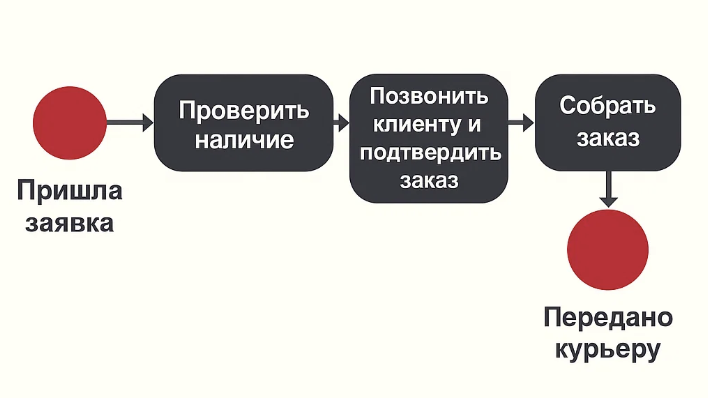 Бизнес-процесс — это повторяющийся порядок действий, алгоритм, по которому компания выполняет задачи. Одни и те же шаги снова и снова приводят к нужному результату.