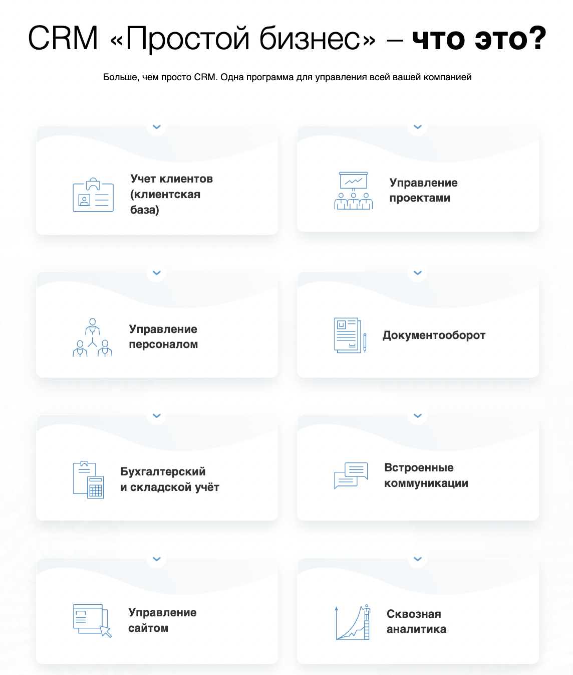 «Простой бизнес» — это комбинированная система, где CRM соседствует с документооборотом и базовым складским учетом. Есть даже возможность установить коробочную версию на свой сервер. Сервис существует уже много лет и ориентирован на практичных предпринимателей.