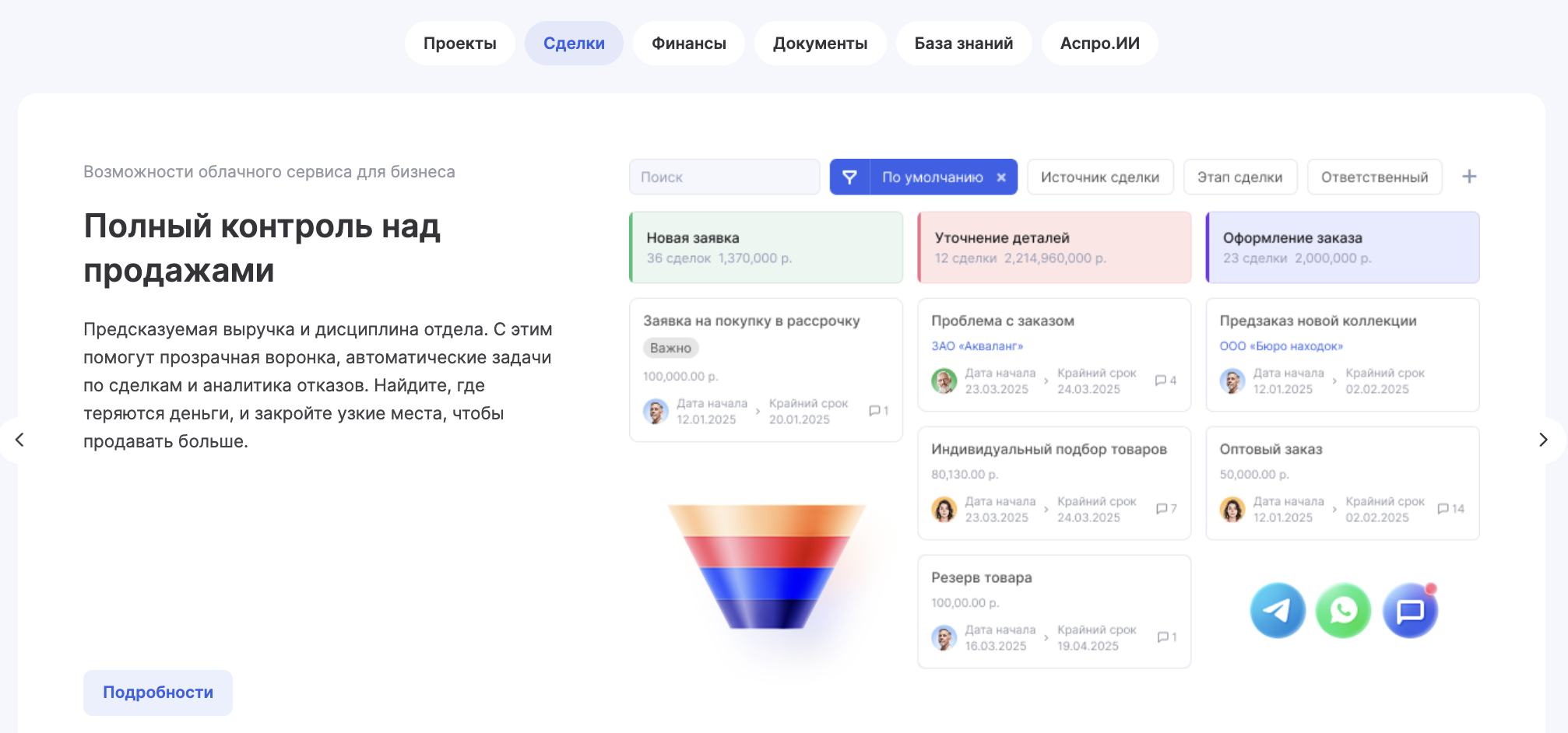 - интеграции с популярными мессенджерами и мобильное приложение.