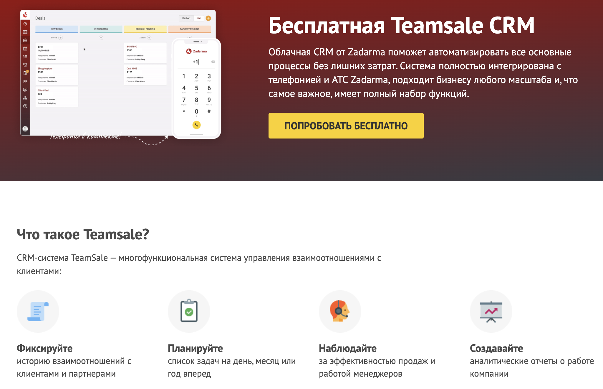 Teamsale CRM (от Zadarma) — король телефонных продаж