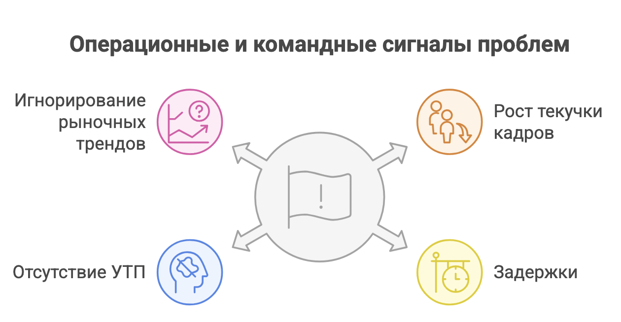 Многие игнорируют качественные сигналы. Не проводят exit-интервью при увольнениях, не слушают жалобы клиентов, не опрашивают команду. В результате диагноз ставится неверный: «Это сезонность», хотя на самом деле — потеря конкурентоспособности.