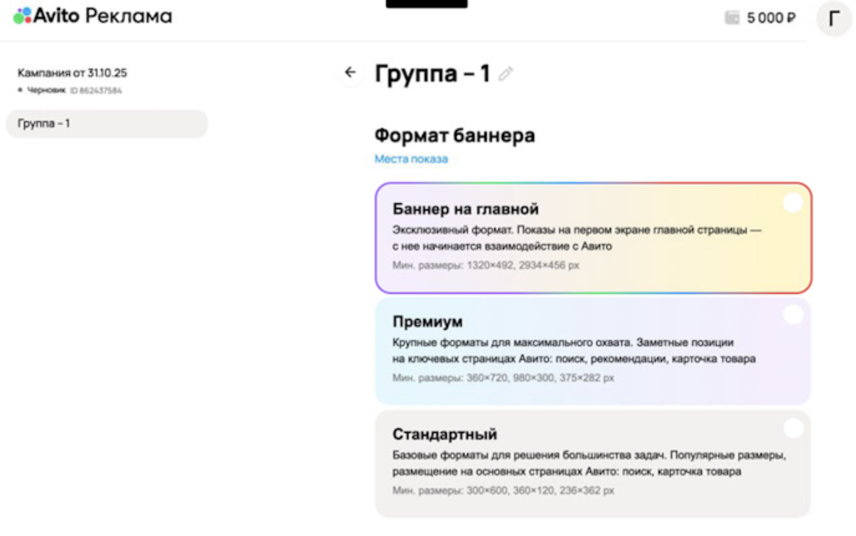 В новом формате рекламодатели полностью контролируют процесс: настраивают таргетинги, загружают креативы и запускают кампании. После прохождения модерации баннер появляется на первом экране сайта и в мобильном приложении Авито — на всех устройствах. Продвигать можно как внешние сайты, так и магазины внутри платформы.