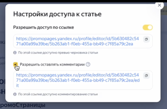 Публичные ссылки на черновики