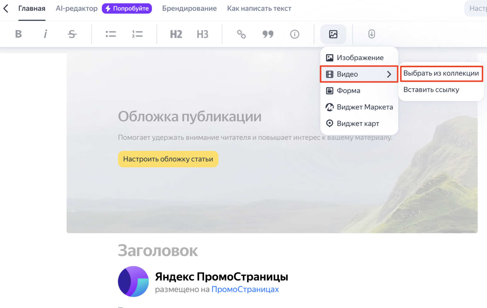 Видео в статьях помогает удерживать внимание читателей и нагляднее раскрывать детали предложения. Раньше в ПромоСтраницах ролики можно было вставлять только через ссылку на внешний видеохостинг. Теперь все проще: можно загрузить видео прямо в коллекцию кабинета и добавить его в тело статьи — без сторонних платформ.