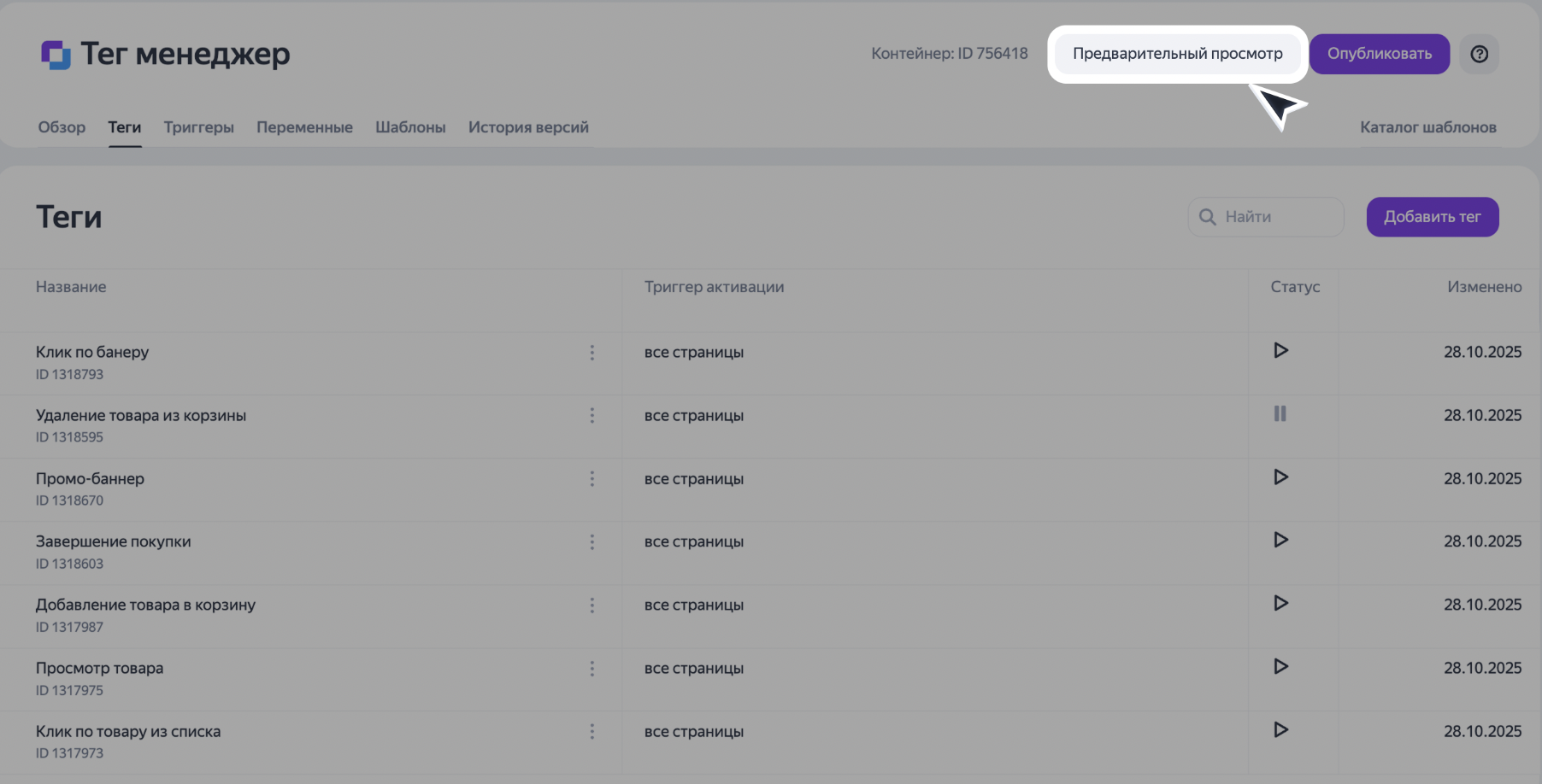 - отслеживать срабатывание тегов в реальном времени: видно, какие теги активировались, какие — нет, и по какой причине;