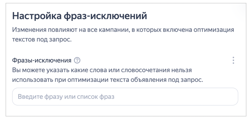 Теперь нейросеть не только подстраивает заголовки и описания под поисковые запросы пользователей, но и позволяет исключать нежелательные слова или фразы с помощью новой функции «фразы-исключения».