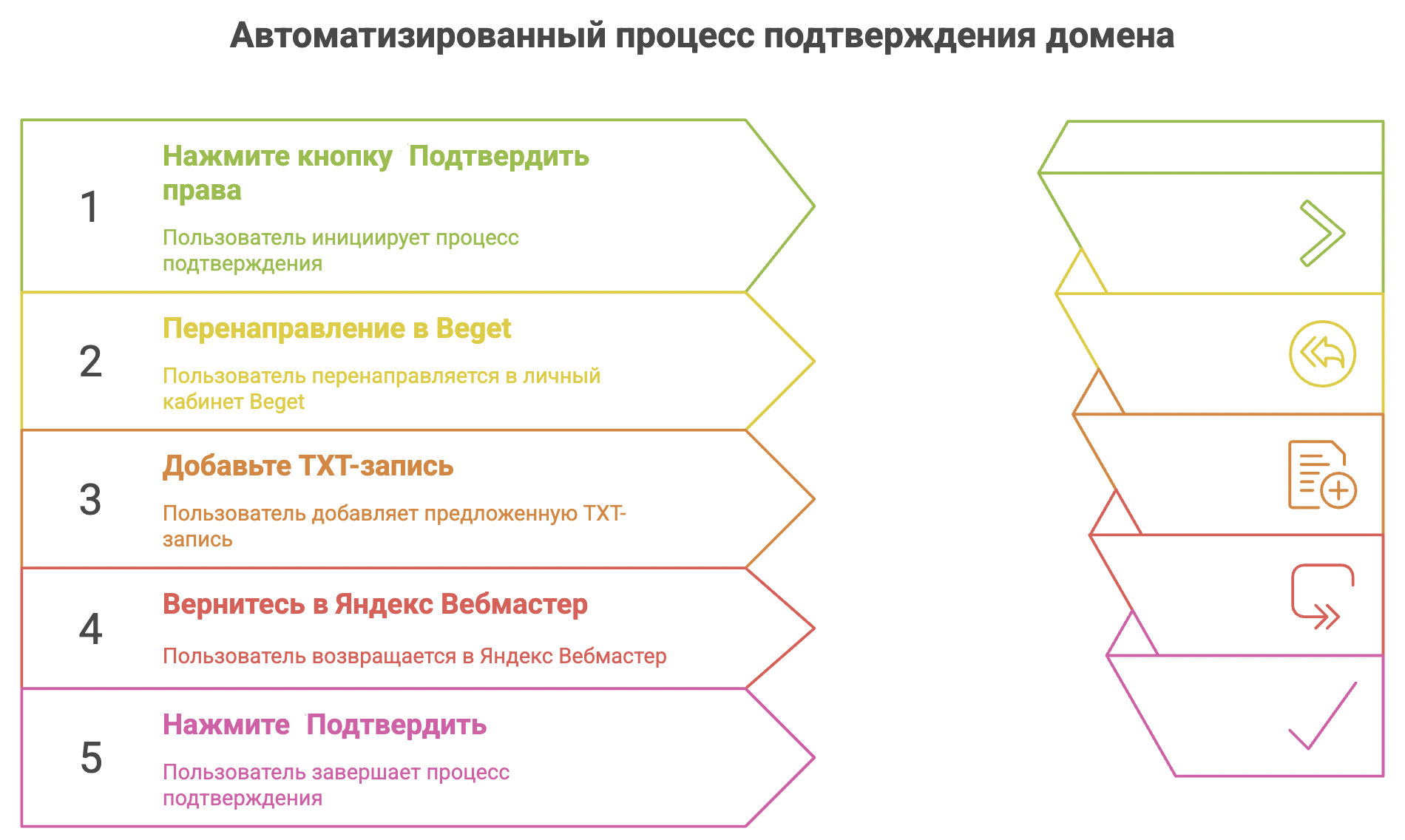 Яндекс Вебмастер теперь поддерживает интеграцию с регистраторами доменных имен. Благодаря этому пользователи могут автоматически подтверждать права на свои сайты, без необходимости выполнять дополнительные технические действия.