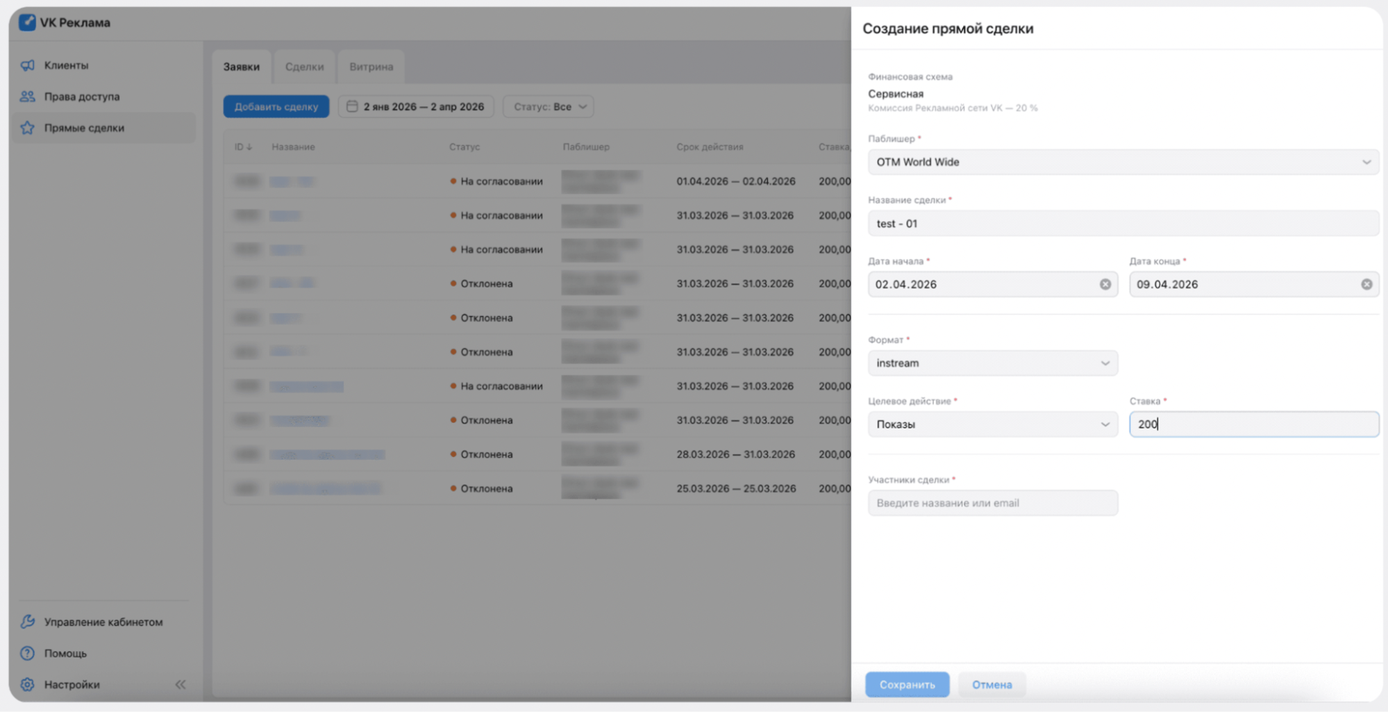 Процесс стал более прозрачным: создание и настройка сделки во внешней рекламной сети теперь полностью находятся на стороне рекламодателя. Пользователь может самостоятельно выбрать площадку из доступного списка, добавить клиентов, заранее зафиксировать CPM и определить срок действия сделки. На текущий момент доступны форматы мультиформат и InStream. В будущем планируется запуск размещений на Smart TV.