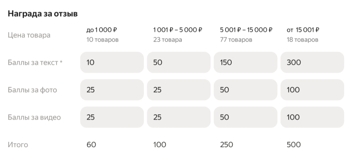 Также обновлена шкала ставок в отзывах за баллы — минимальная ставка теперь зависит от цены товара.