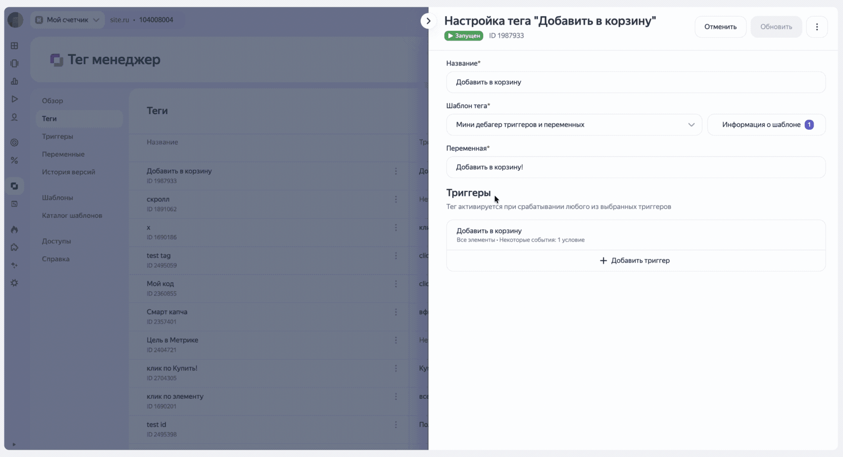 Обновление уже доступно всем пользователям Яндекс Тег Менеджера.