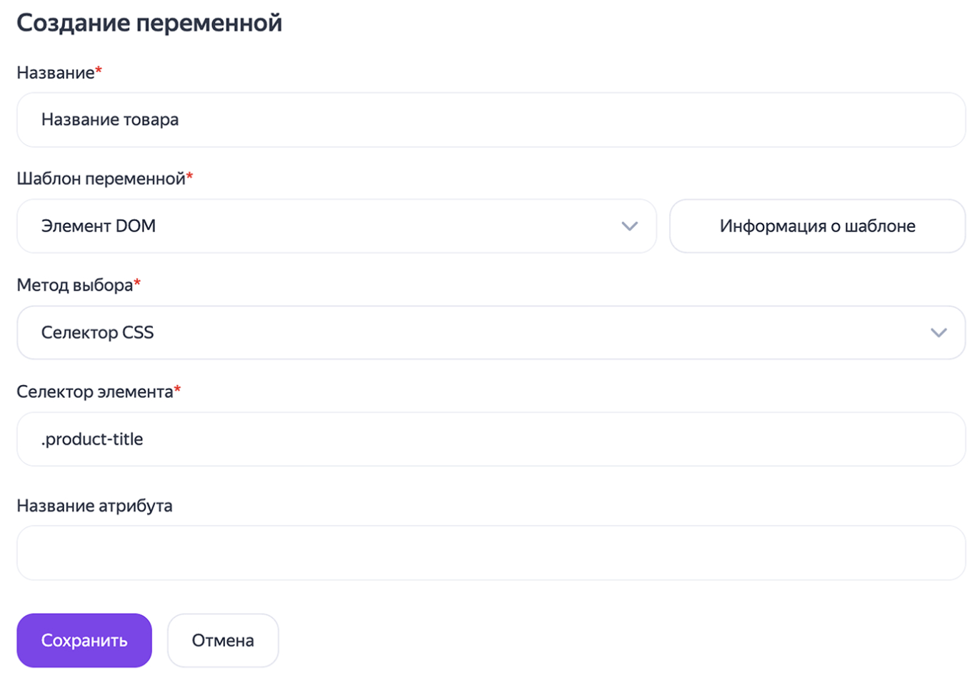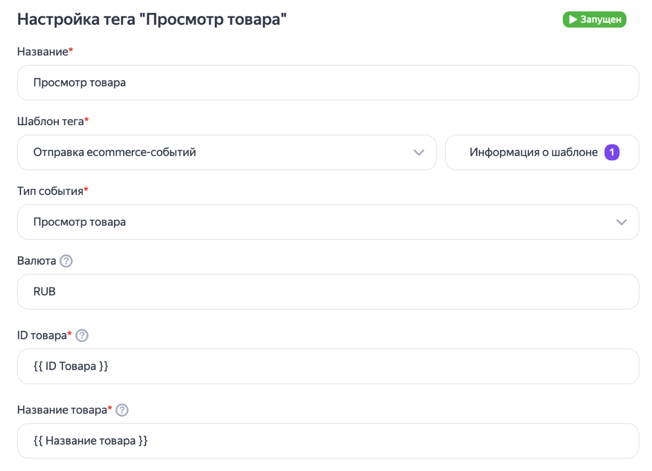 Пользователю нужно лишь указать местоположение информации о товаре на странице, используя CSS-селекторы или идентификаторы. Система сама извлечет такие параметры, как название, ID, цену и категорию товара, и передаст их в Яндекс Метрику. Все настройки выполняются прямо в интерфейсе Тег Менеджера.