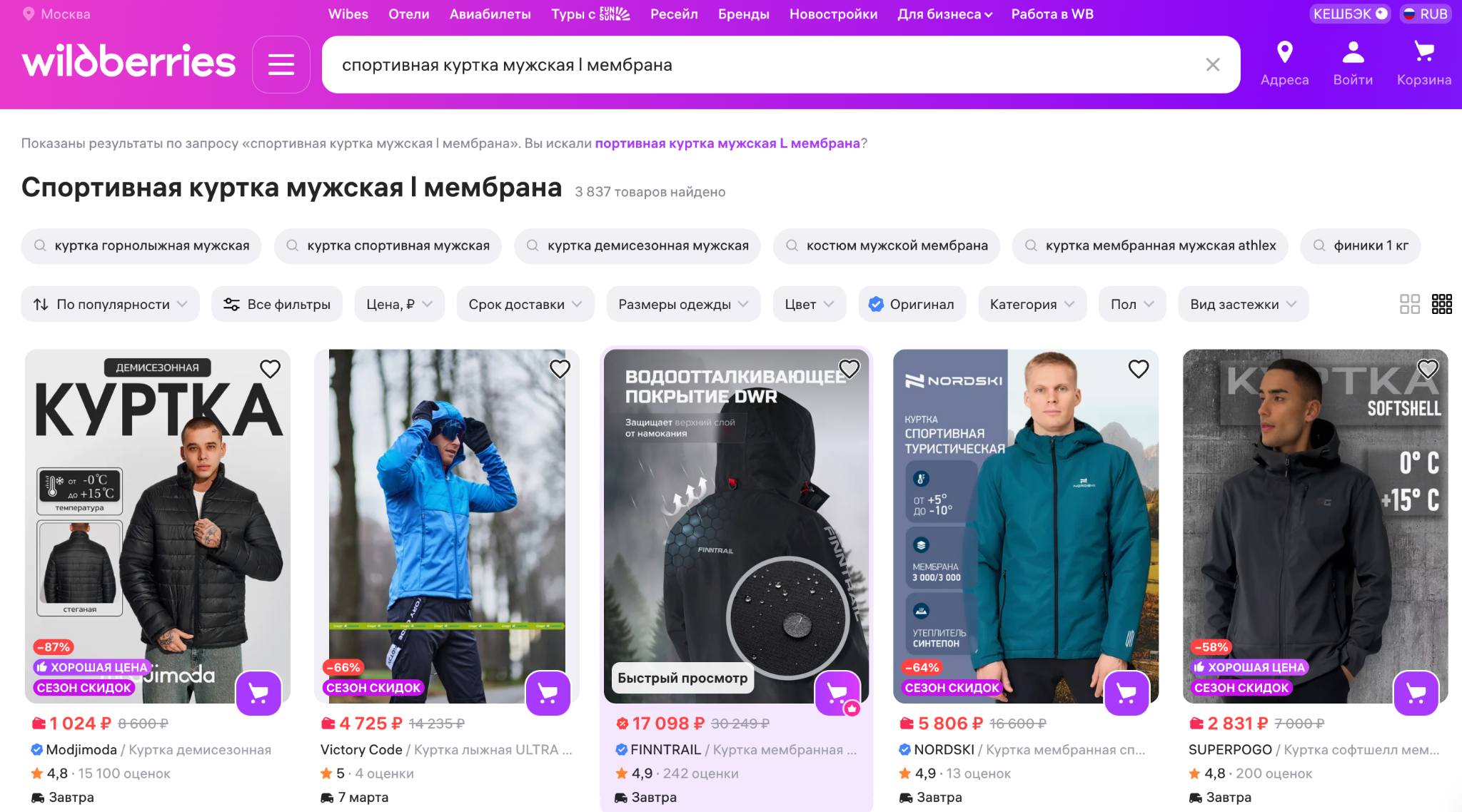 Если в карточке четко указаны «мужская», размер «L» и материал «мембранная ткань», товар попадает в релевантную выборку.