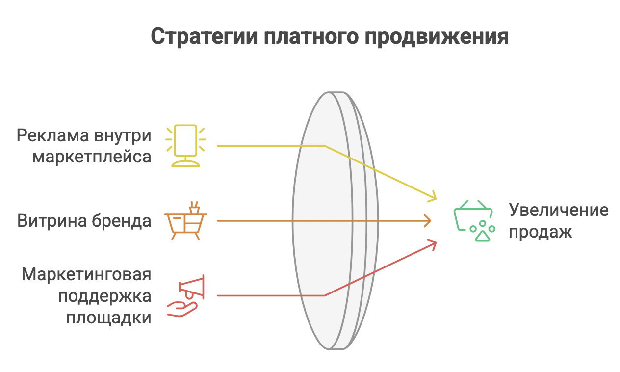 Это платное продвижение карточек в поиске, категориях и карточках конкурентов. На Wildberries и Ozon инструменты называются по-разному, но логика одна — аукцион: чем выше ставка, тем больше показов.