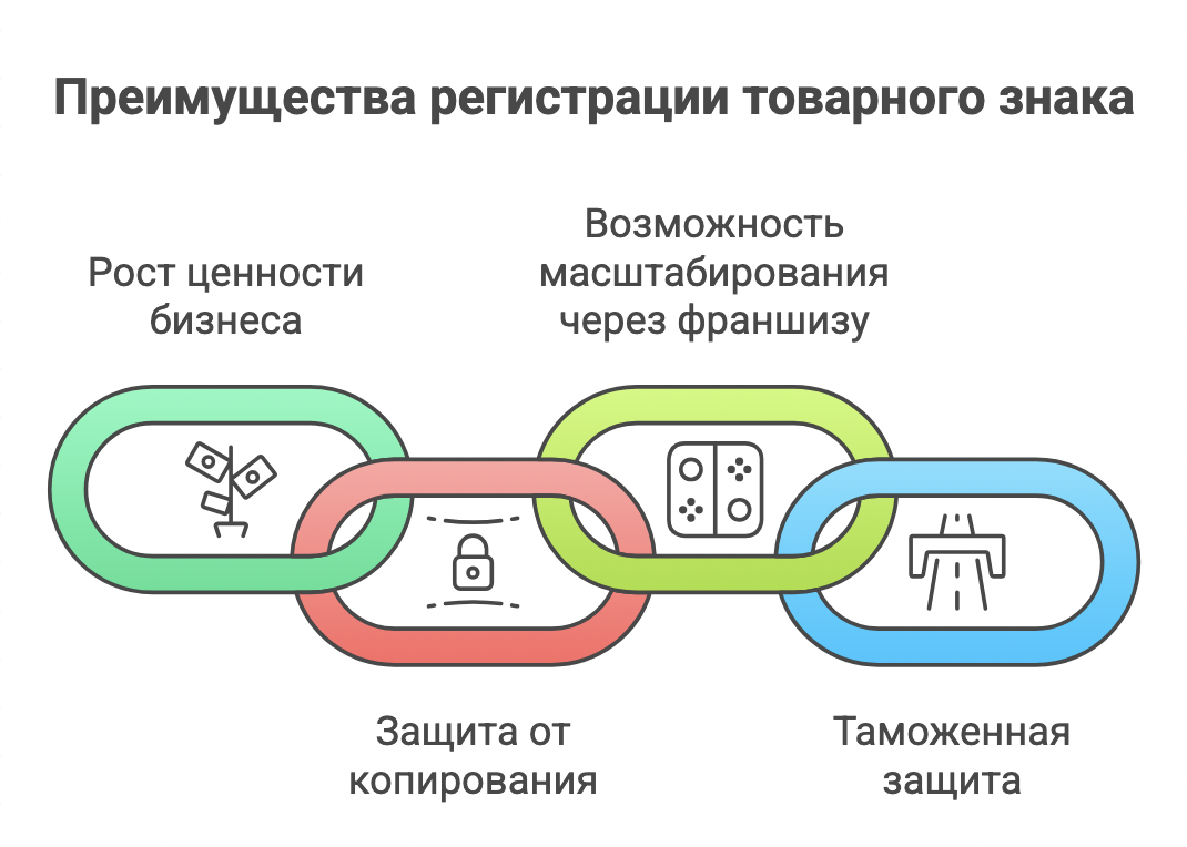- Возможность масштабирования через франшизу. Без зарегистрированного товарного знака нельзя заключать договоры коммерческой концессии. Именно он является юридической основой для продажи франшизы.