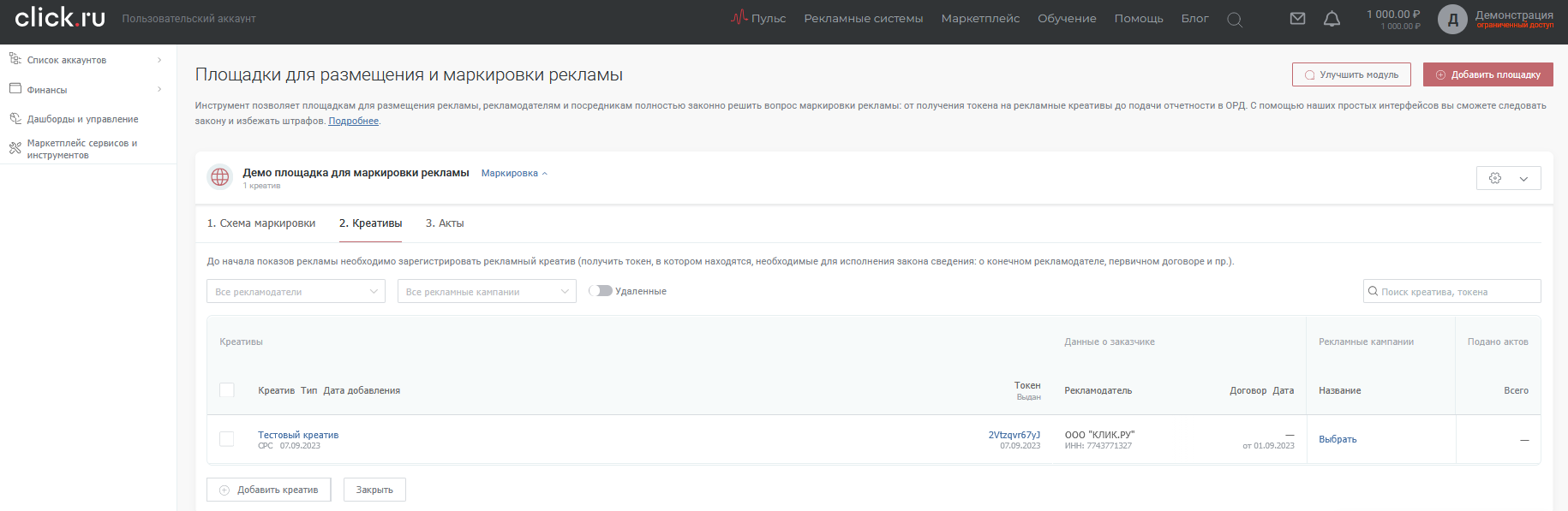 500 объявлений равны 500 маркерам «Озон ОРД». Причем платить нужно только за креативы. Договоры, акты, организации не подлежат оплате, в отличие от, например, «ОРД Сбер».